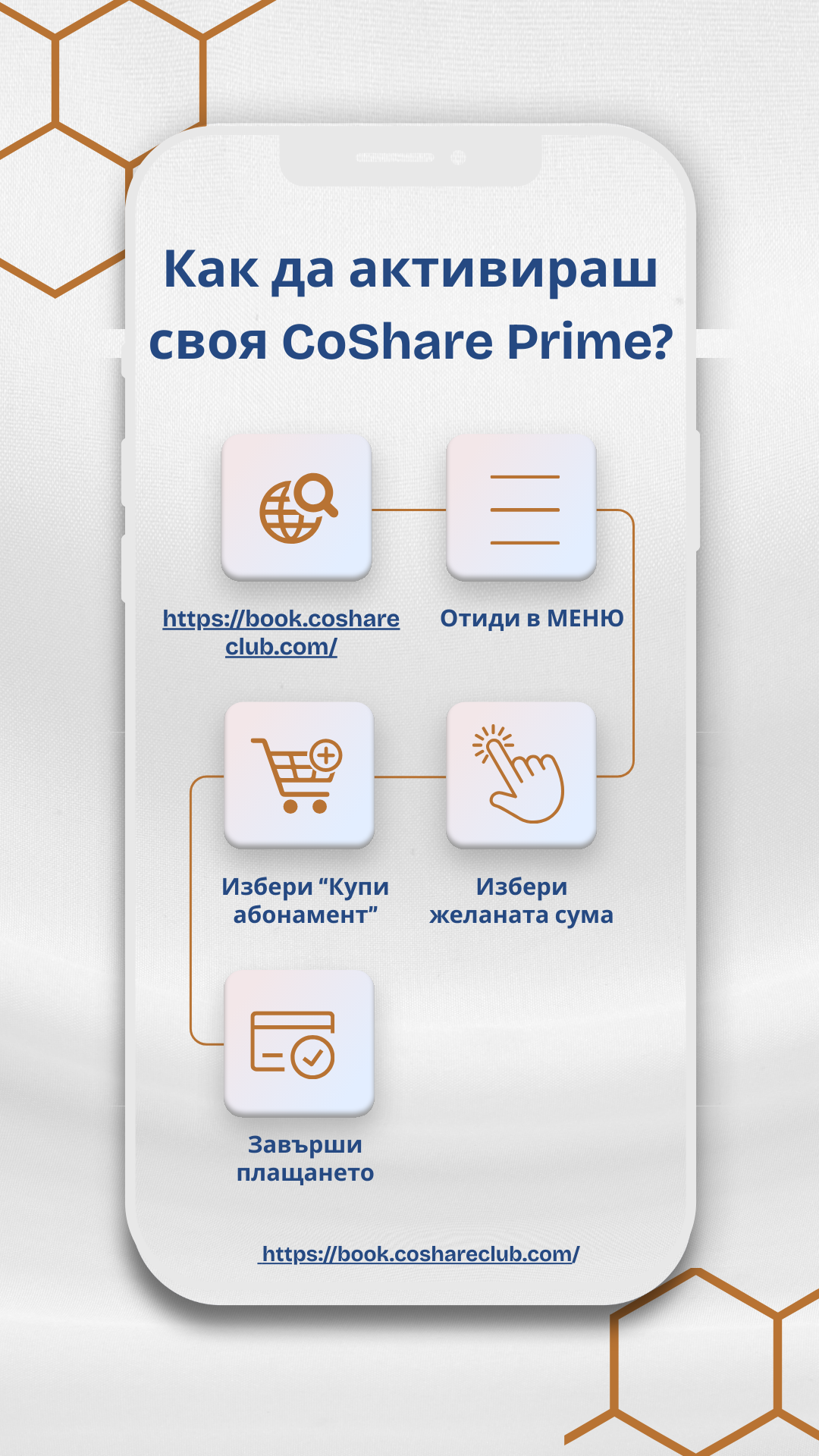 Ако усетиш, че този формат е за теб, можеш да активираш своя CoShare Prime директно през личния си профил в CoShare.