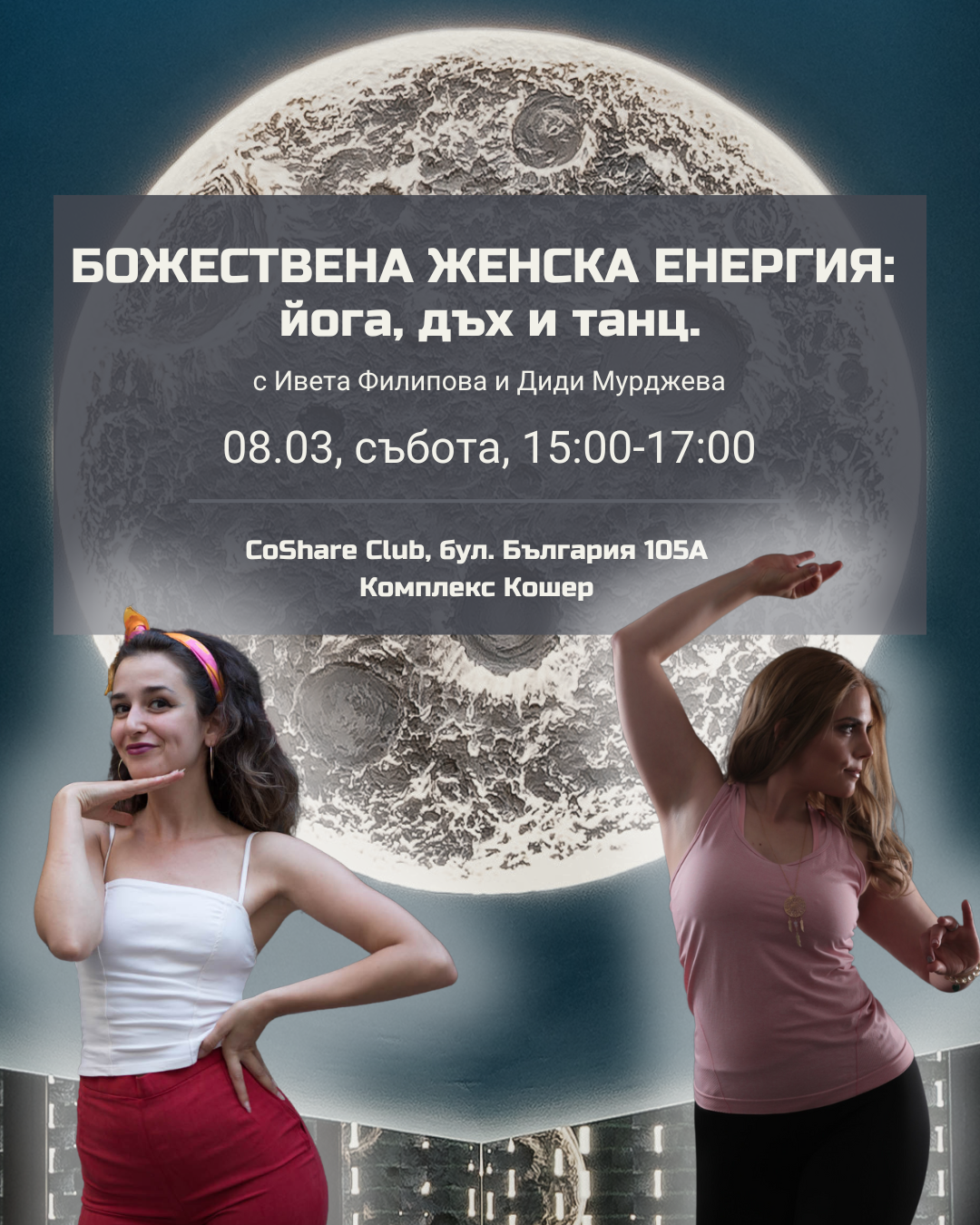 БОЖЕСТВЕНА ЖЕНСКА ЕНЕРГИЯ: йога, дъх и танц.